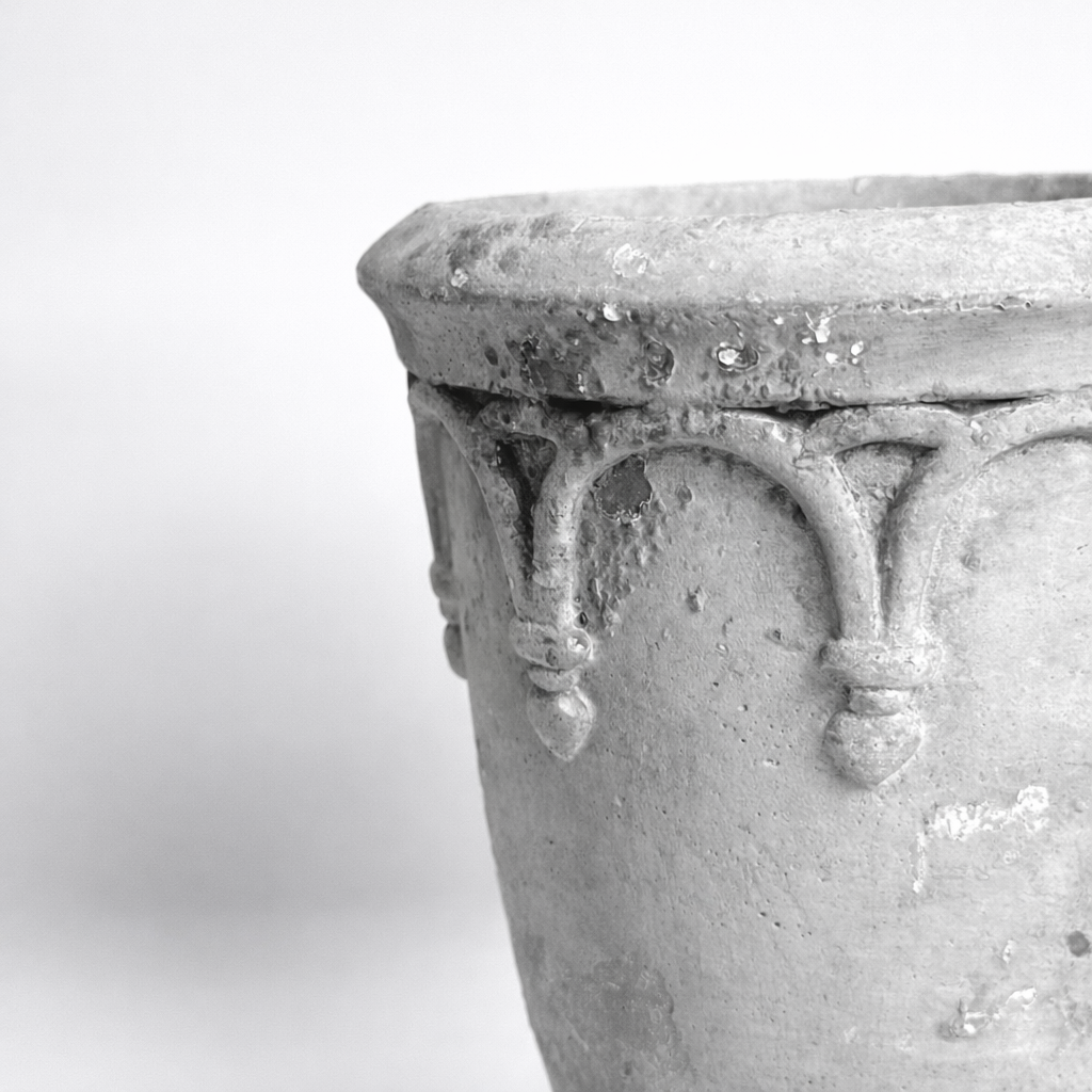 A charming vintage concrete urn pot with a classic silhouette and timeworn character. Perfect for small plants, dried stems, or styled on its own as a decorative accent.