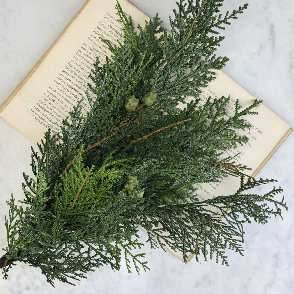 Add natural texture and effortless greenery to your space with this 22-inch white cedar bush. Featuring soft, lifelike cedar foliage with natural variation, it brings a fresh, organic feel to vases, shelves, tablescapes, or layered seasonal arrangements.