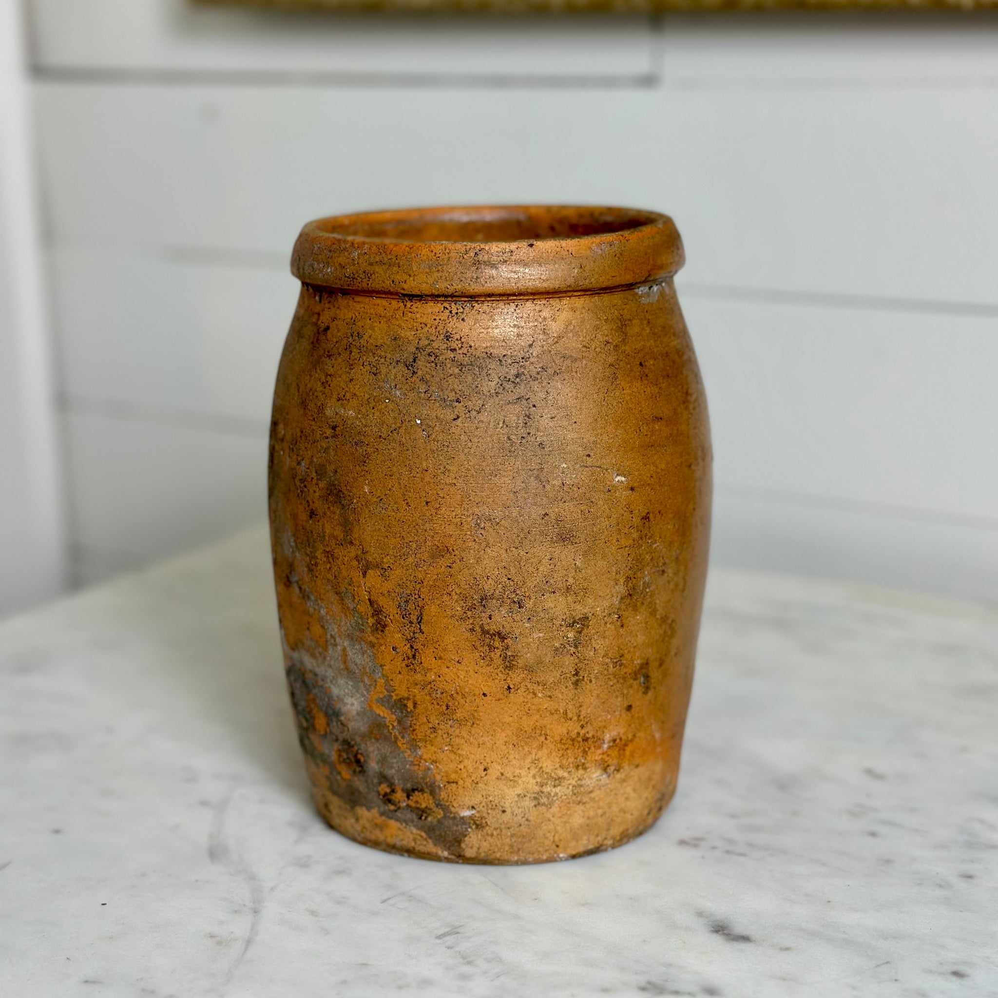 A charming French earthenware pot with a classic, rustic feel and timeless character. Perfect for styling on shelves, tables, or used as a decorative vessel for dried stems or utensils.
