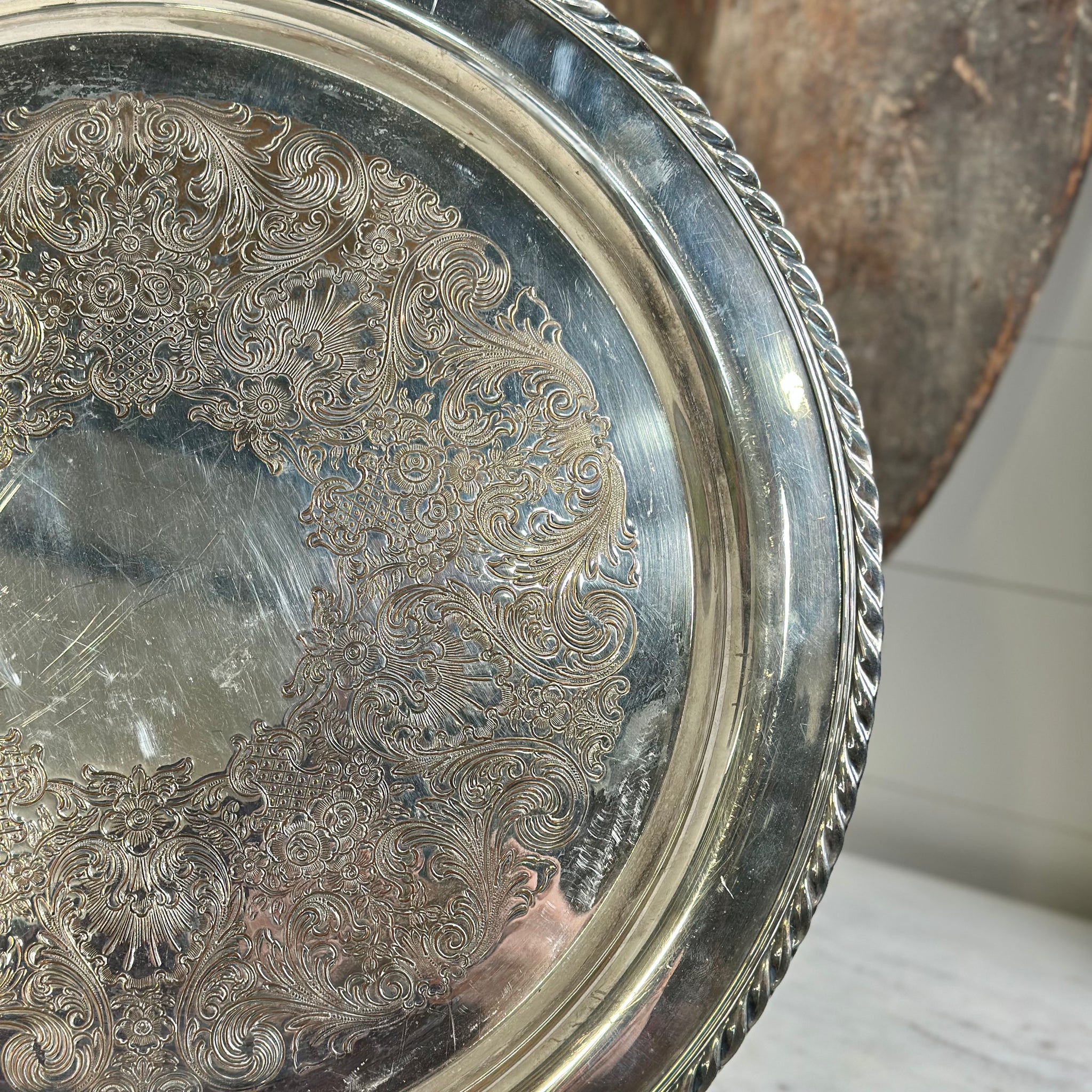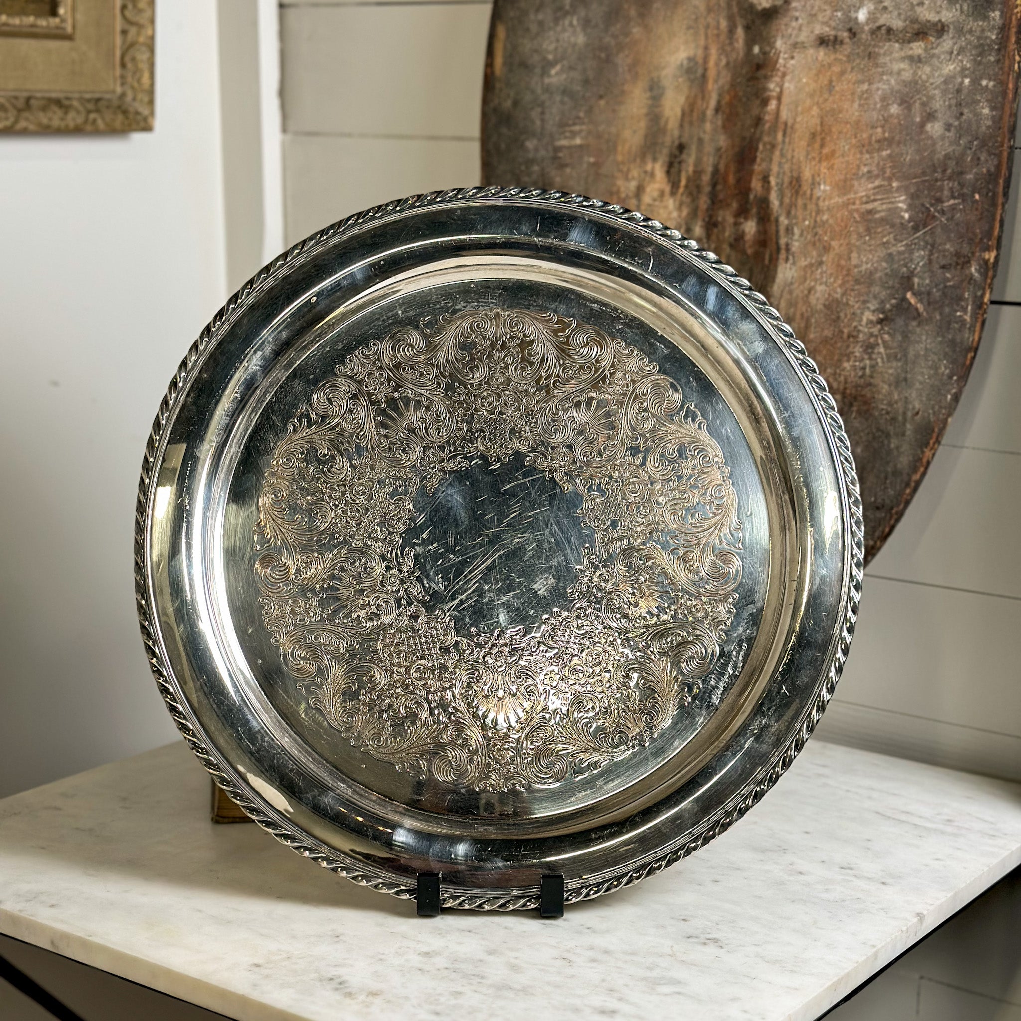 Silver-Plated Round Serving Tray
